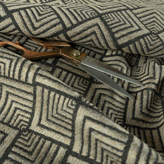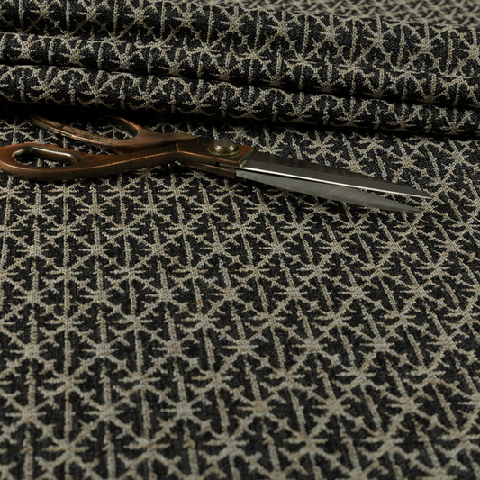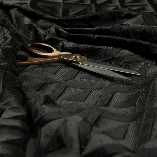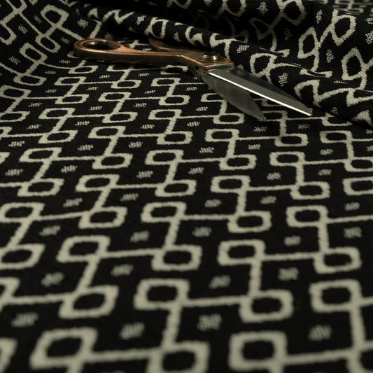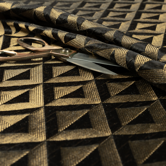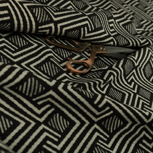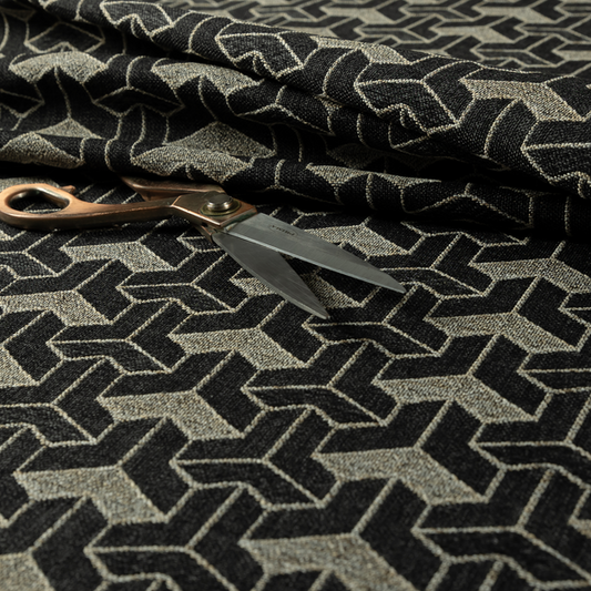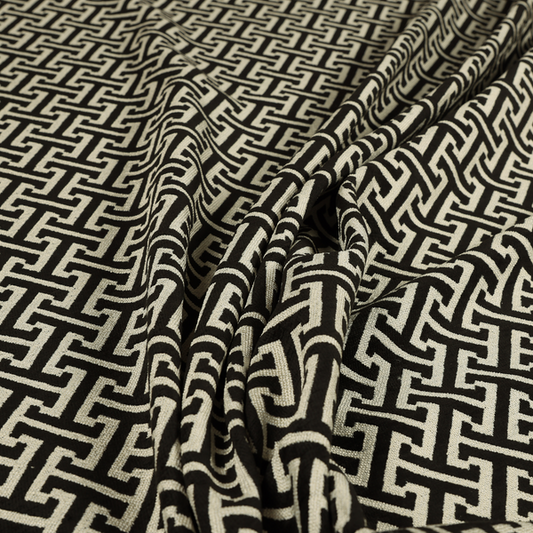 Black coloured geometric fabrics features bold, modern patterns that add a contemporary edge to your upholstery creations. Its sleek black background highlights the sharp geometric designs, making it ideal for cushions, accessories, or interior décor. Durable and stylish, this fabric brings a dynamic and sophisticated look to any project.