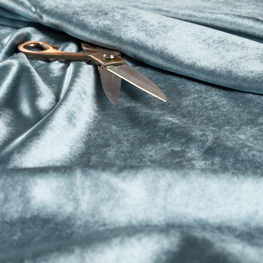 Blue coloured velvet fabric features a plush, dense pile in a deep blue shade, renowned for its sumptuous texture and rich colour depth. Perfect for luxurious upholstery, drapery, and high-end fashion, this fabric combines elegance with durability, enhancing any project with timeless sophistication and tactile richness. You can buy your blue velvet fabrics from Yorkshire Fabric Shop knowing you've got the best range of blue velvet to choose online.