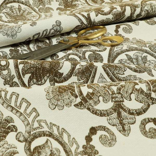 Brown large design pattern fabrics is a type of textile that features a prominent, intricate design in varying shades of brown. The patterns can range from geometric shapes to floral motifs, adding visual interest and depth to any room. This fabric is often used for upholstery, curtains, throw pillows, and other home decor accents.