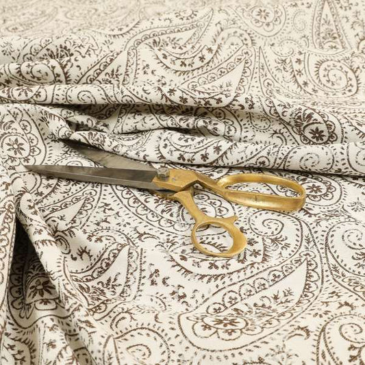 Brown paisley fabrics are a type of textile that features a distinctive teardrop-shaped pattern known as paisley. This pattern originated in Persia and has been popular in fashion and interior design for centuries. Yorkshire Fabric Shop's brown paisley fabric typically combines shades of brown with intricate paisley motifs, creating a rich and sophisticated look. You can buy your brown paisley fabric in velvet material to chenille's, order samples from the comfort of online fabric shopping.