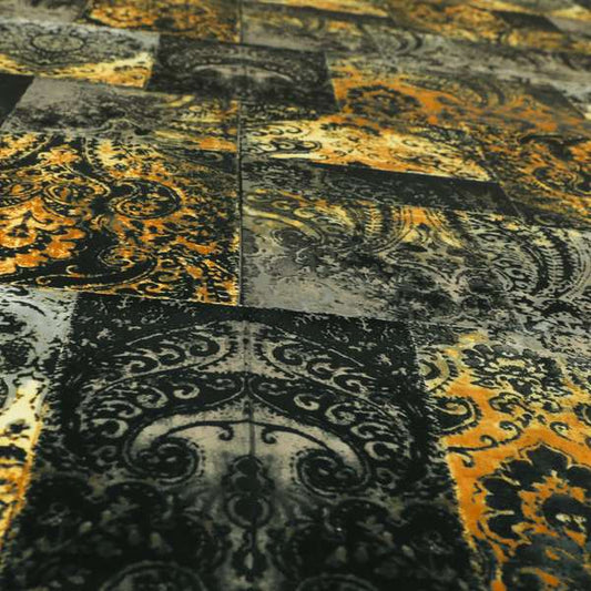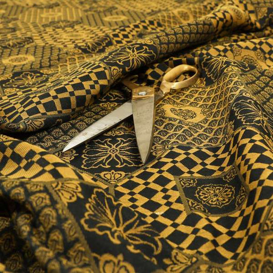 Exciting golden coloured patchwork fabric features a rich blend of patterns and textures highlighted by a warm metallic sheen. Ideal for creating unique upholstery, fashion pieces, or home décor, it adds a luxurious and artistic touch to your projects.