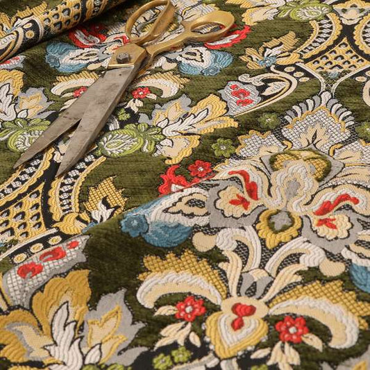 Yorkshire Fabric Shop's green damask fabric showcases intricate, classic patterns woven into a rich green background. Perfect for elegant upholstery, drapery, or formal cushions, it adds a timeless and sophisticated touch to your projects. We have green damask fabrics in velvets to chenille's. Available in small size patterns to large bold pattern designs, shop today.