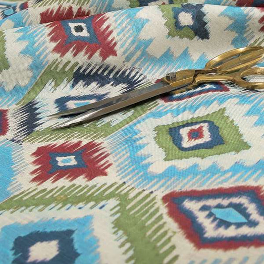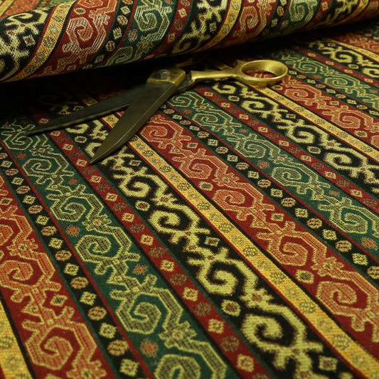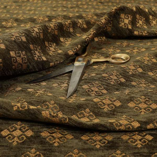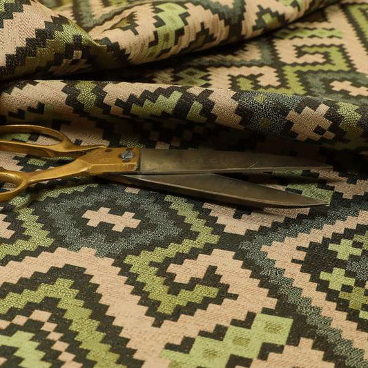 These green coloured tribal fabric features bold, culturally inspired patterns in a vibrant green shade available in chenille and velvets. Perfect for statement fashion pieces or unique home décor, it adds an artistic and dynamic flair to your creative projects. At Yorkshire Fabric Shop we have a range of tribal and kilim fabrics in green that will suit most tastes. Order your samples today of the green tribal fabrics and then you can order the fabric online too.