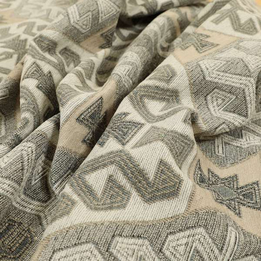 Yorkshire Fabric Shop's grey coloured tribal Kilim fabric brings a distinctive, handcrafted charm to your furniture. Featuring traditional patterns in velvet or chenille, it adds cultural depth and texture to sofas, chairs, or cushions. Durable and stylish, it’s perfect for creating a unique, inviting atmosphere in any room.