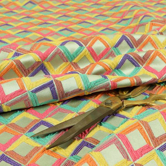 Elevate your dining experience by using multi coloured geometric fabric for table linens. Whether you opt for a tablecloth, placemats, or napkins, these vibrant textiles will add a touch of fun to your meals.