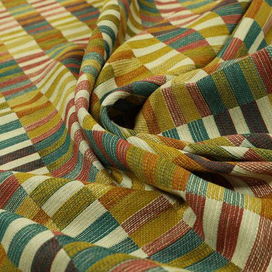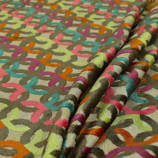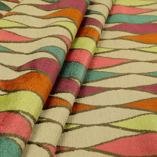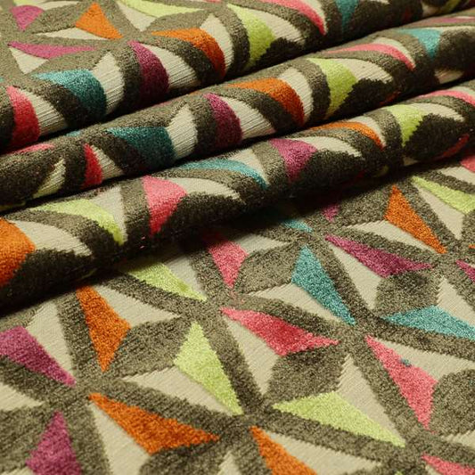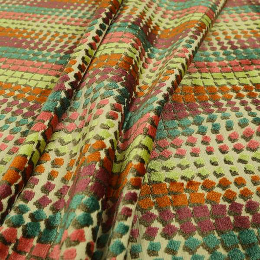 Take your furniture to the next level by upholstering it with multi coloured geometric fabric in velvet or chenille. Whether you choose to reupholster a chair, ottoman, or headboard, this bold fabric choice will make a statement in any room.