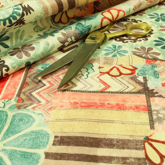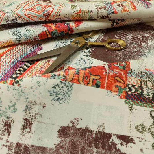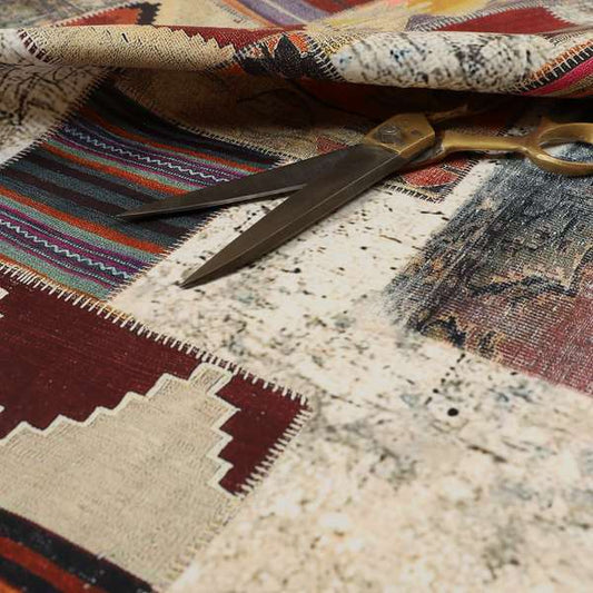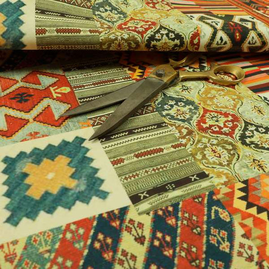 A multi-coloured patchwork fabric that combines a variety of vibrant patterns and textures, creating a lively and eclectic look. Ideal for upholstery, it adds character and warmth to sofas, chairs, or cushions, making your furniture a unique centre point in any room.