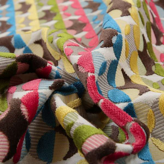 Yorkshire Fabric Shop has a collection of amazing multi-coloured velvet fabric that features a rich, plush texture paired with a vibrant blend of colours. Perfect for upholstery, it adds a touch of luxury and warmth to sofas, chairs, or curtains, enhancing your furniture with both comfort and style. Choose from deep velvets that oozes luxury or have a printed velvet, either way our range of multicoloured velvets are amazing!