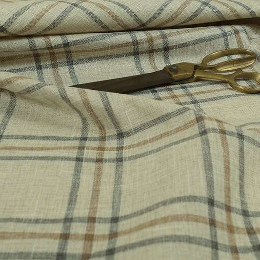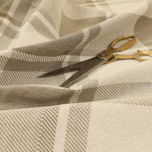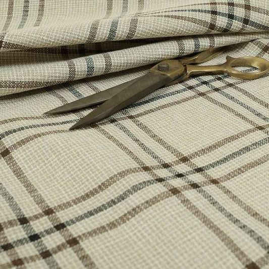 Buy your natural coloured upholstery fabric featuring a classic check and tartan patter from Yorkshire Fabric Shop. A checked tartan material design adds a timeless style and character to your furniture and curtains. Its neutral tones blend effortlessly with various interiors, while the durable material ensures long-lasting comfort and appeal. Perfect for sofas, chairs, and cushions seeking a traditional yet versatile look.