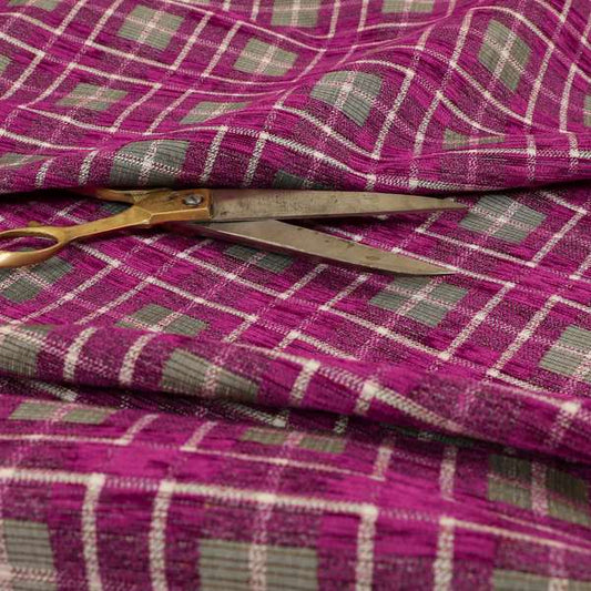 Yorkshire Fabric Shop range of pink colour checked and tartan pattern fabrics combines classic design with durable upholstery quality. Its timeless pattern adds character and warmth to sofas, chairs, and curtains, while the sturdy material ensures lasting comfort and style. These pink tartan fabrics are perfect for creating a cozy and inviting atmosphere in any living space.