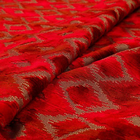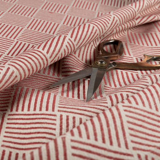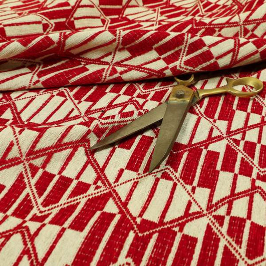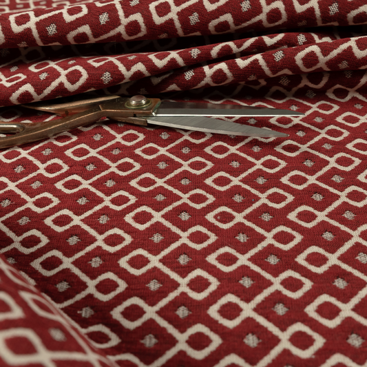 Yorkshire Fabric Shop's red colour geometric fabric features a bold geometric pattern, ideal for upholstery and curtains. Its modern design adds a stylish and dynamic touch to any room, while the durable velvet or chenille material ensures lasting comfort and enhances your home décor.
