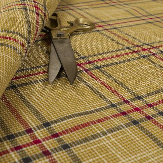 Yorkshire Fabric Shop's yellow fabric features classic check and tartan patterns, perfect for upholstery and curtains. Its timeless design adds a cozy, traditional touch to any space, while the durable material ensures long-lasting comfort and style for your furniture and window treatments. Ideal for creating a warm and inviting atmosphere.