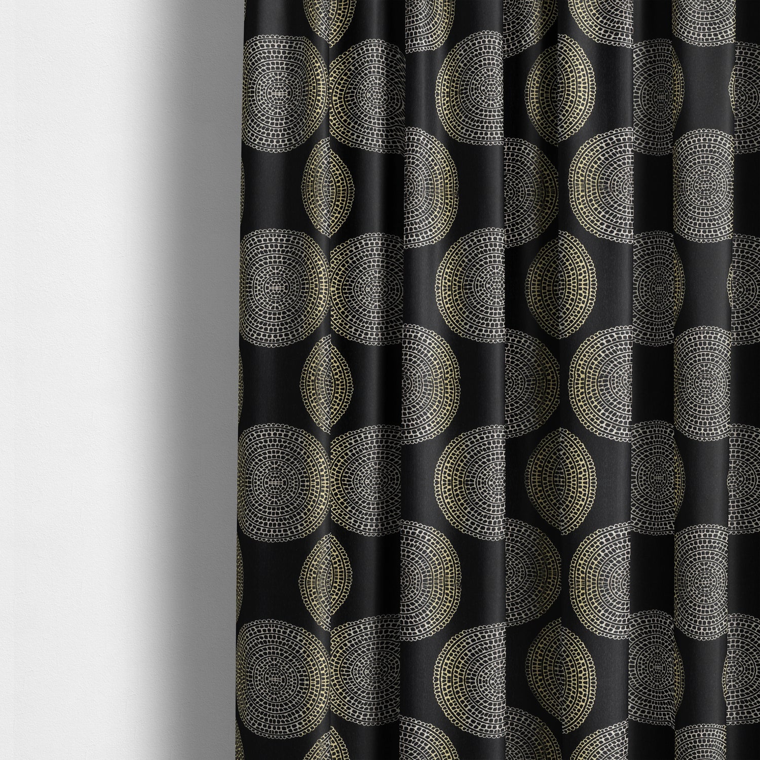 Make a bold and joyful statement with these gold large design curtains!...