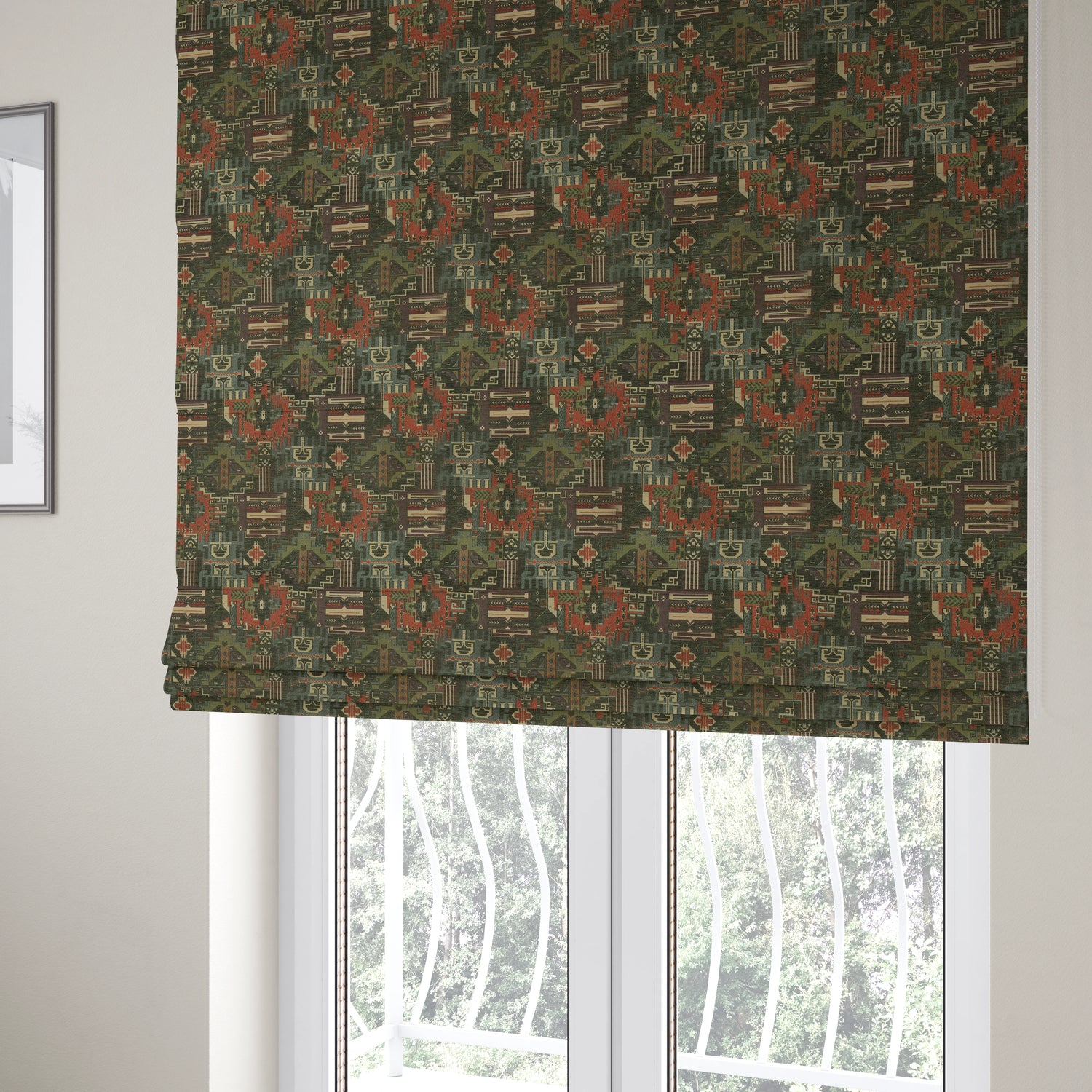 These green coloured tribal fabric features bold, culturally inspired patterns in a...
