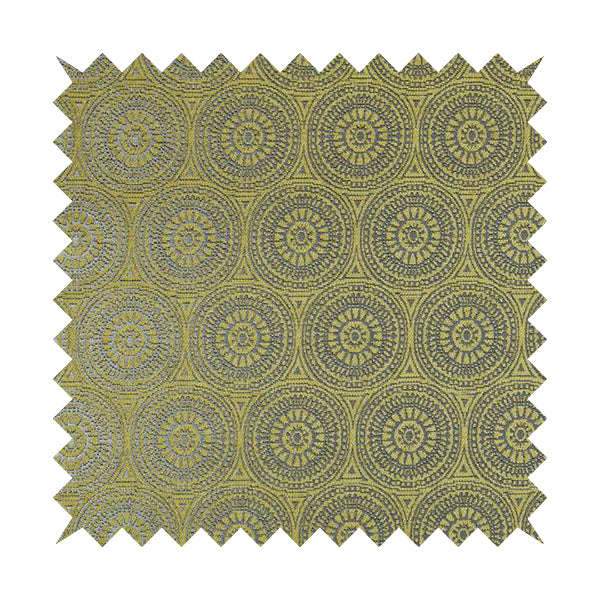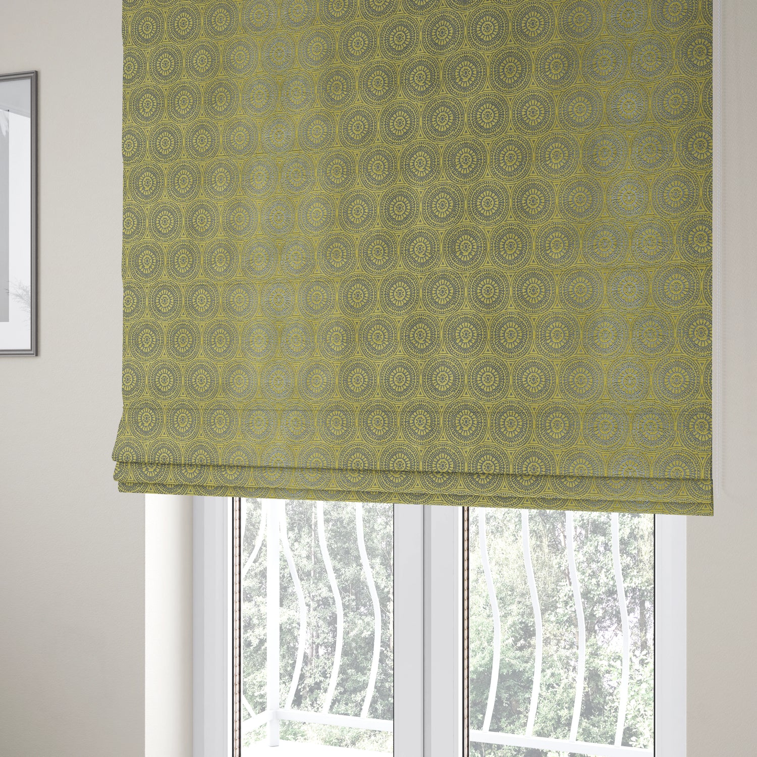 Yorkshire Fabric Shop's green medallion pattern fabric showcases elegant circular motifs set...
