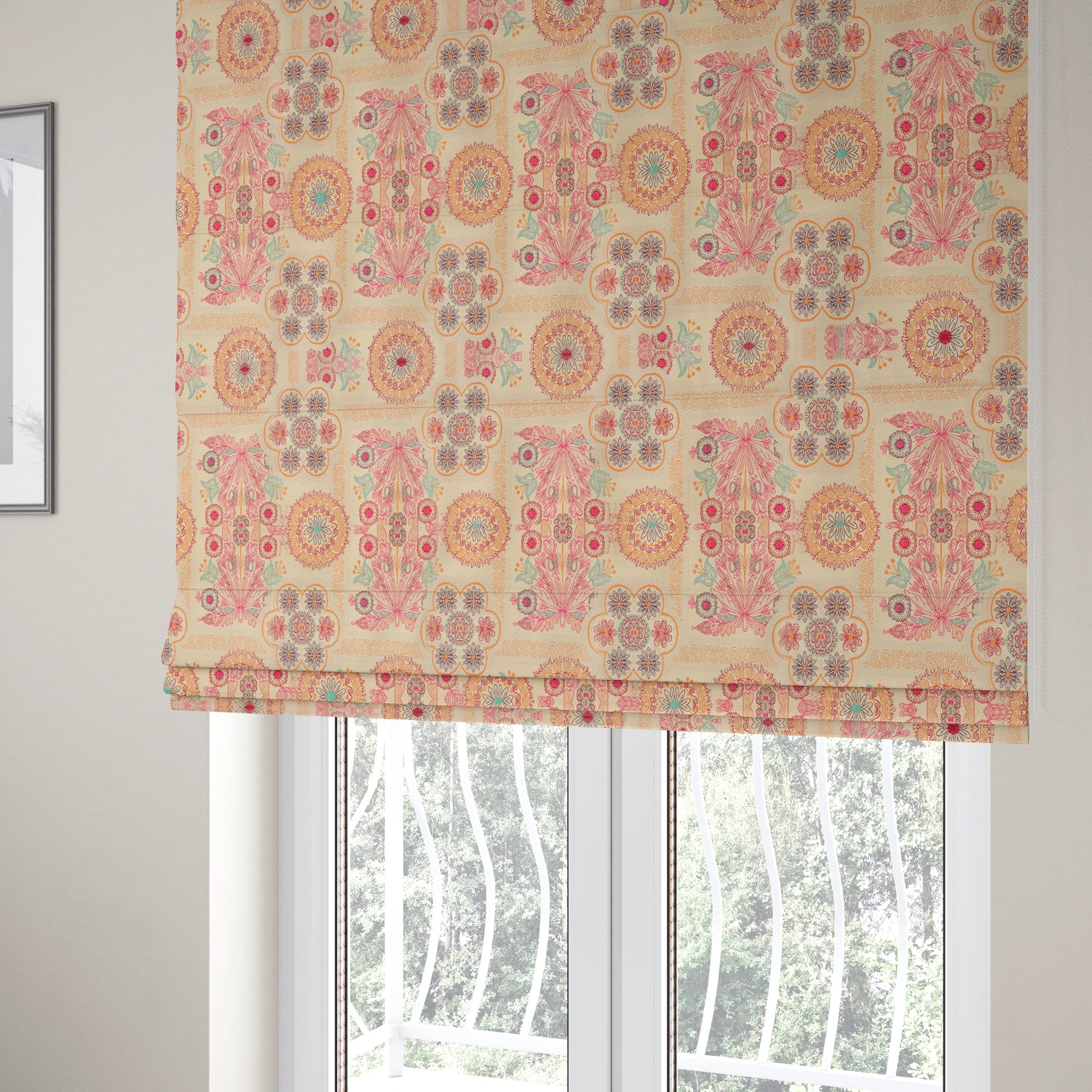 Buy a multi-coloured medallion fabric featuring an intricate circular patterns in a...