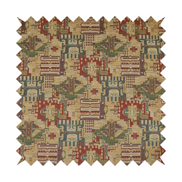These natural coloured upholstery fabric features a tribal kilim pattern that brings...