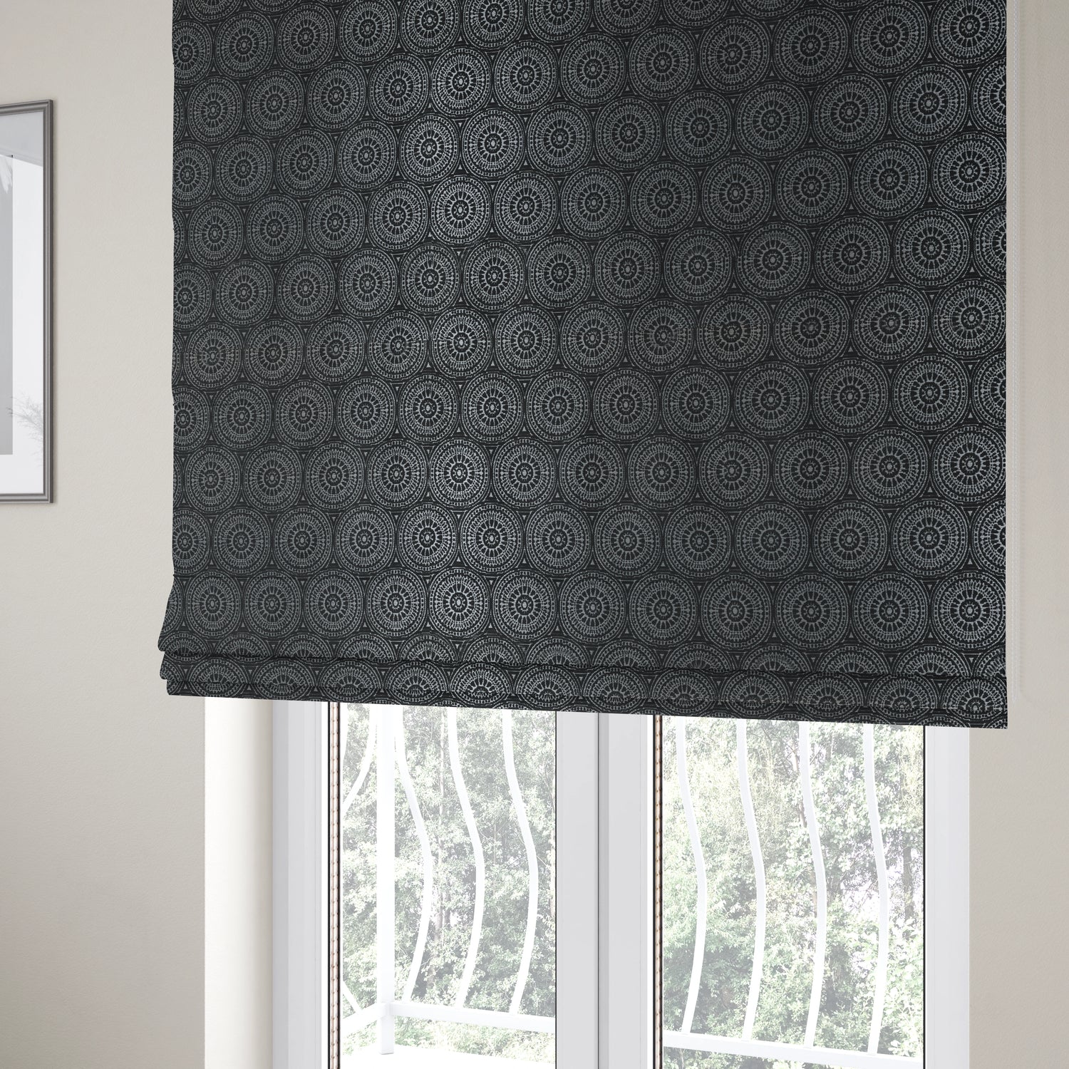 Transform your living space with Yorkshire Fabric Shop's silver coloured medallion pattern...