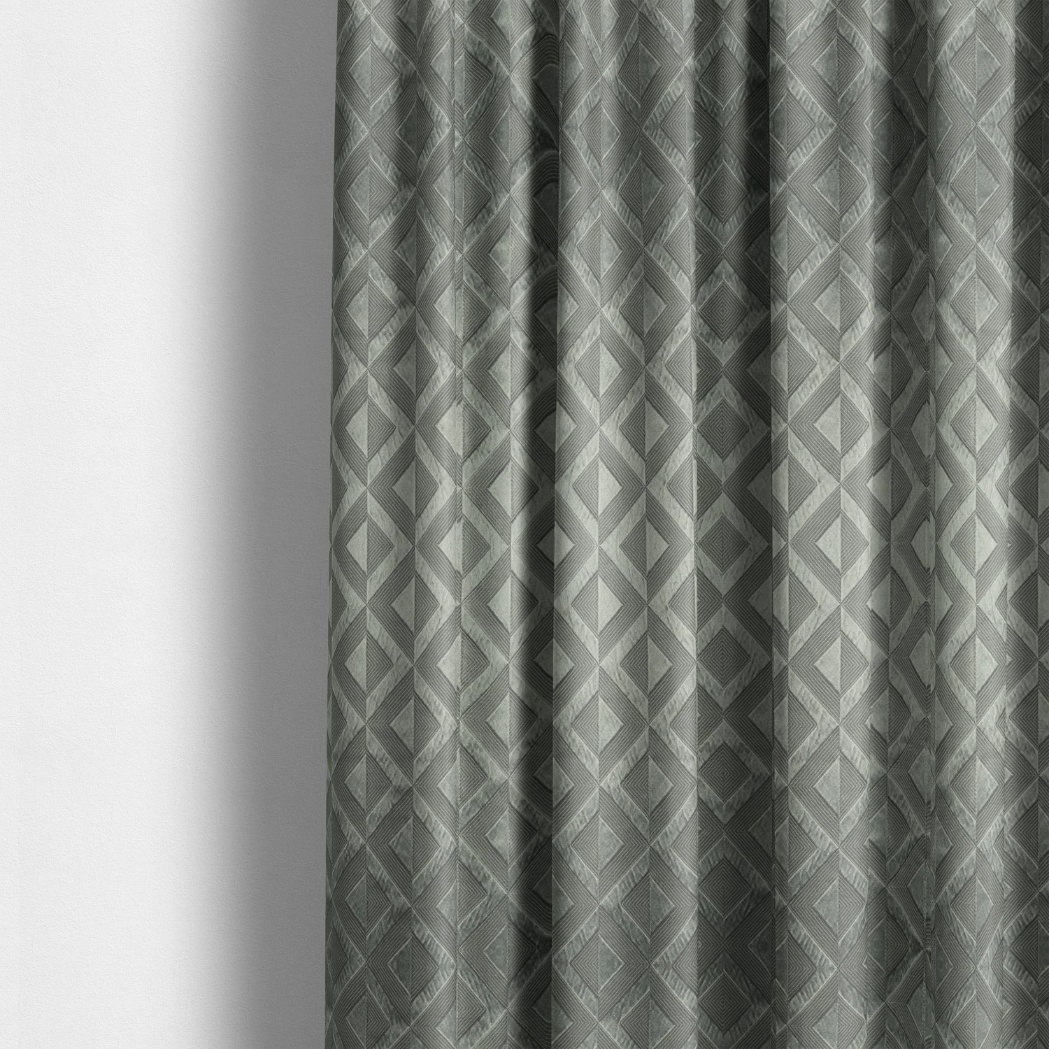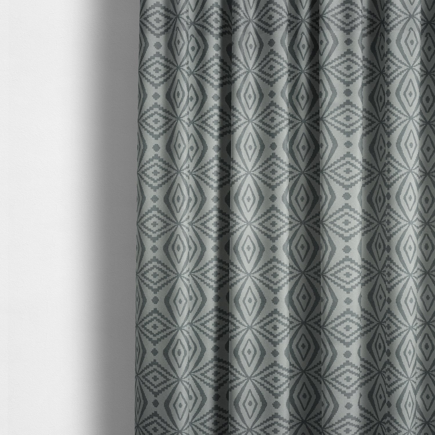 Yorkshire's silver coloured tribal kilim-inspired pattern curtains, available in sumptuous velvet or...