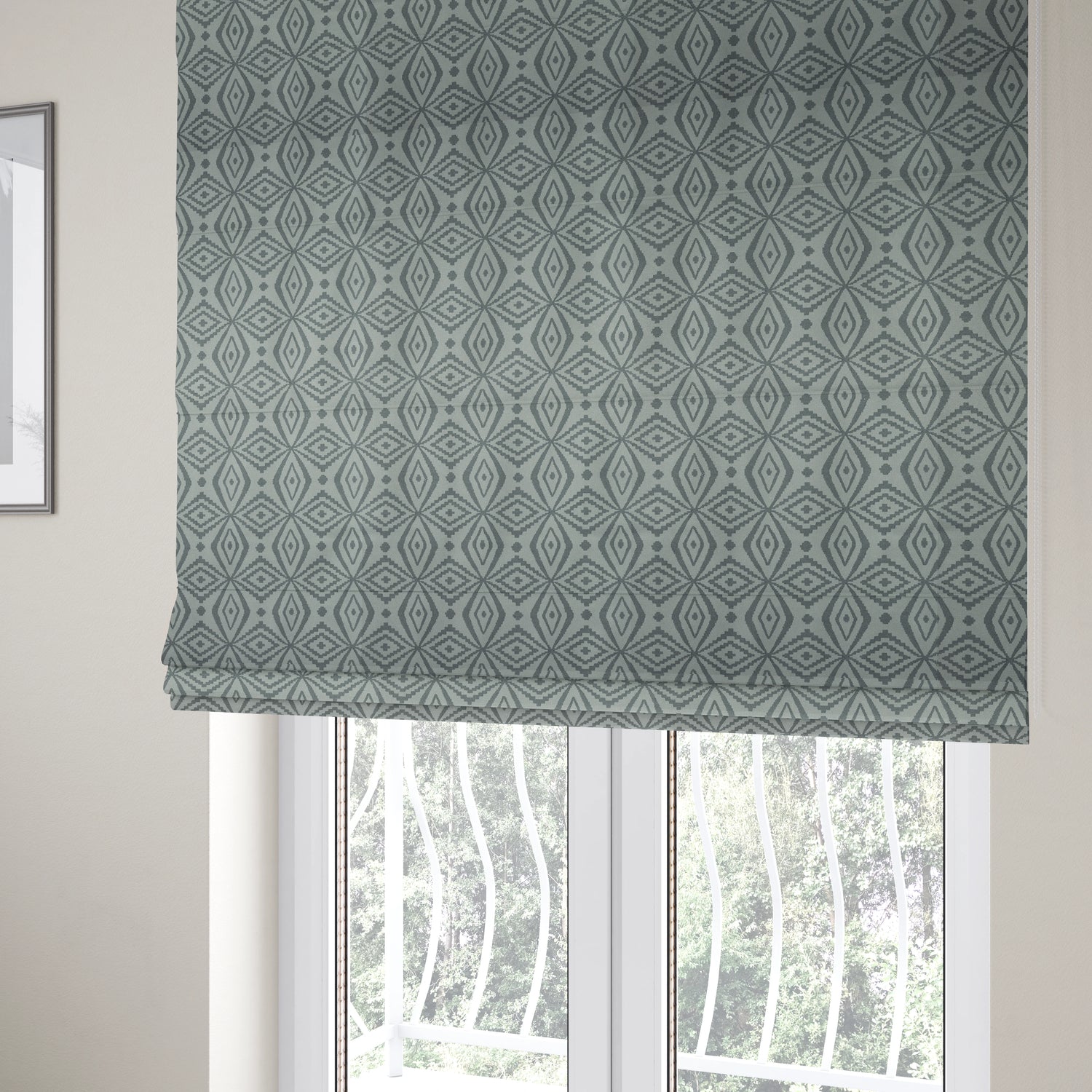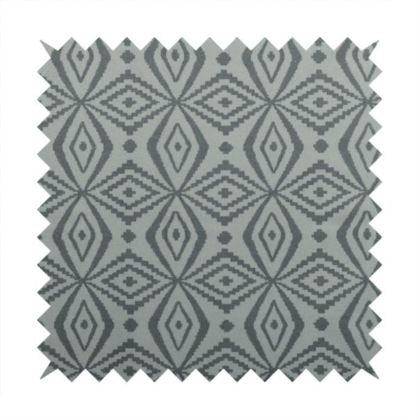 Yorkshire Fabric Shop's silver upholstery fabric features a detailed tribal kilim pattern,...
