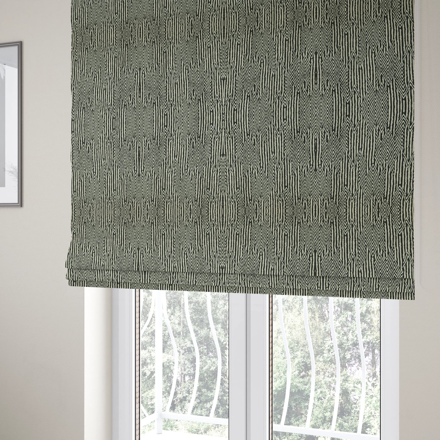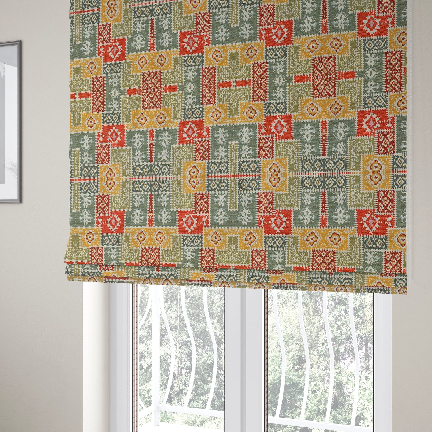 Yorkshire Fabric Shop proudly presents white coloured tribal kilim pattern made-to-measure curtains...