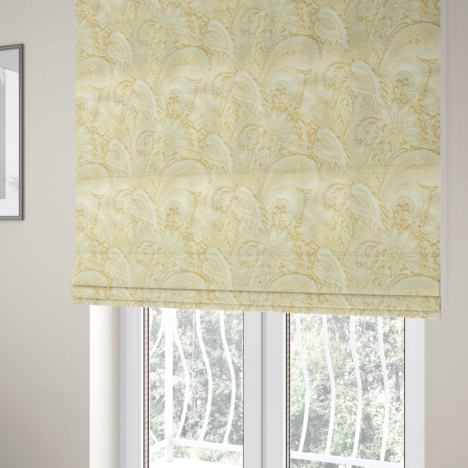 Yorkshire Fabric Shop unveils white coloured paisley designer pattern made to measure...