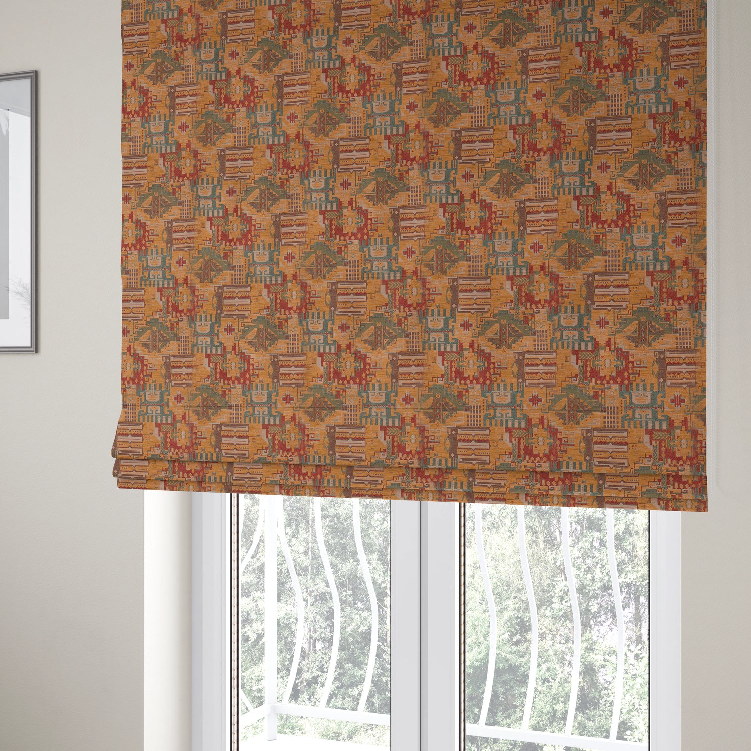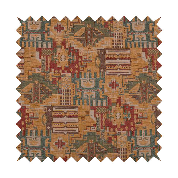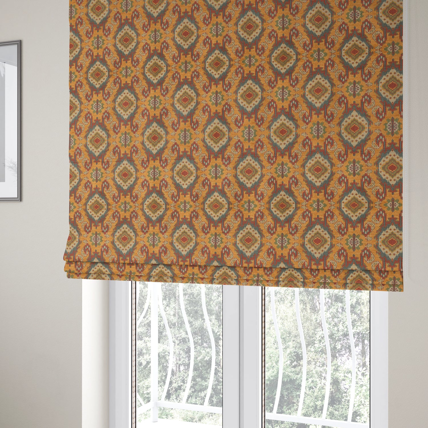 Yorkshire Fabric Shop's coloured yellow tribal fabric features a vibrant tribal kilim...