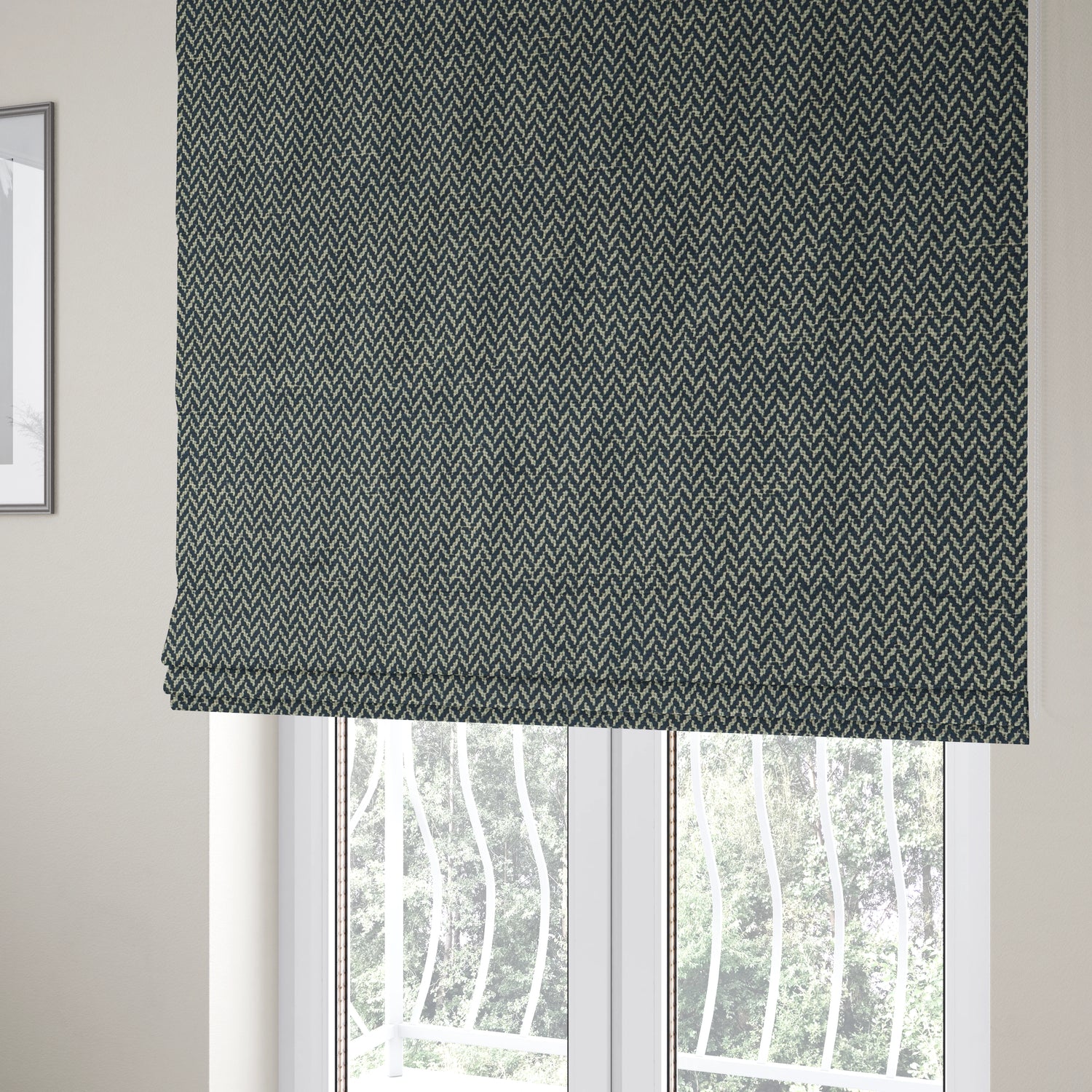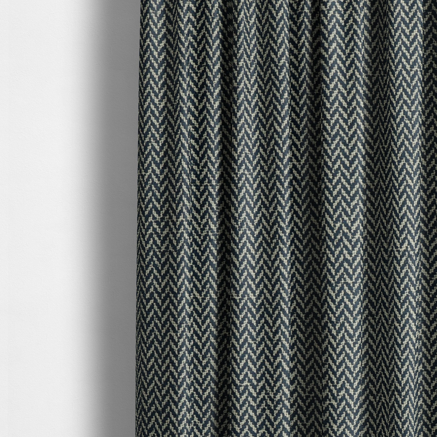 Introduce subtle texture and classic style with Yorkshire Fabric's blue herringbone curtains....