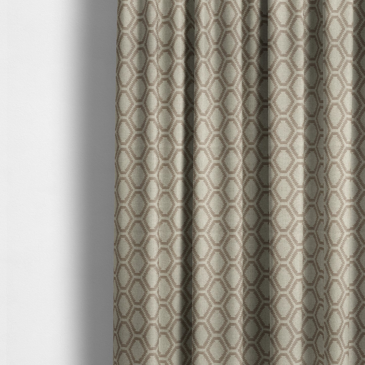 This Aamna upholstery fabric features a uniformed geometric pattern in a rich brown colour. Made to measure curtains in this fabric will add a sophisticated touch to any room. Perfect for adding visual interest and a refined look to your home decor.