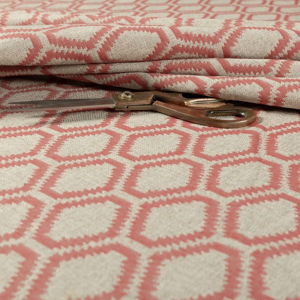 Discover the perfect balance of style and functionality with our Aamna upholstery fabric. Featuring a uniformed geometric pattern in a soft, feminine pink, this fabric is the ideal choice for Roman blinds. The durable fabric is sure to add a touch of sophistication to any room while providing privacy and light control.