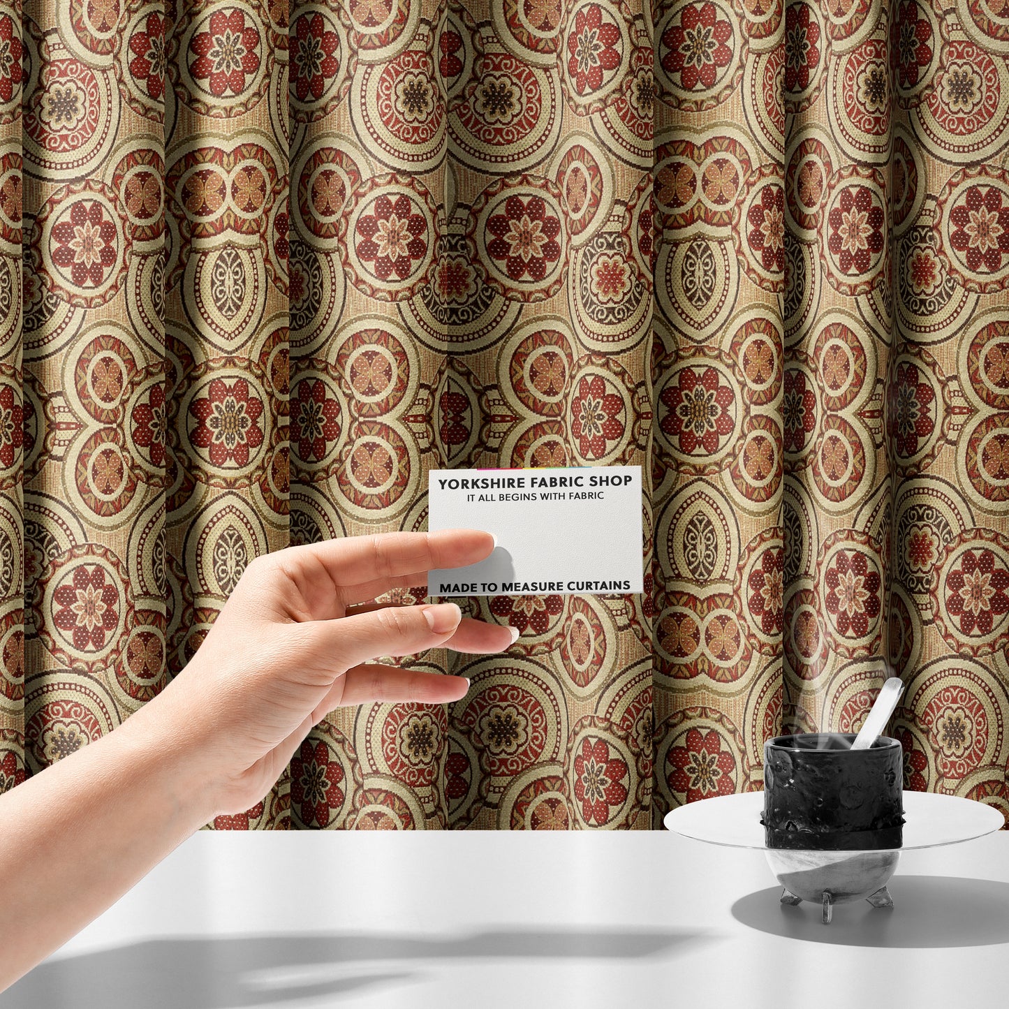 Expertly crafted with vibrant red chenille fabric, this circular floral pattern adds a modern touch to your home decor. Our made-to-measure curtains provide the perfect fit and finish to elevate any room. Upgrade your style with the Acer ctr-760 curtains.