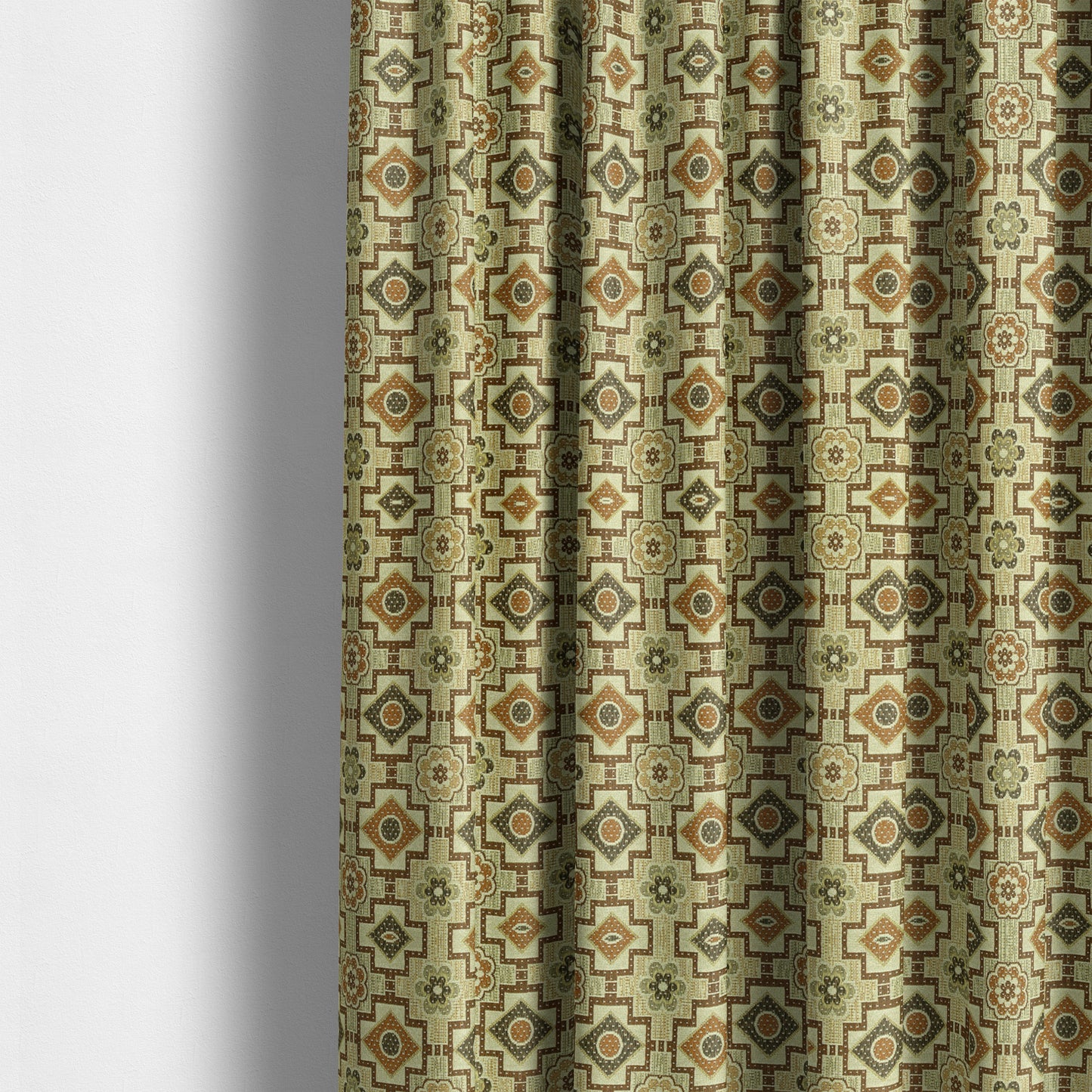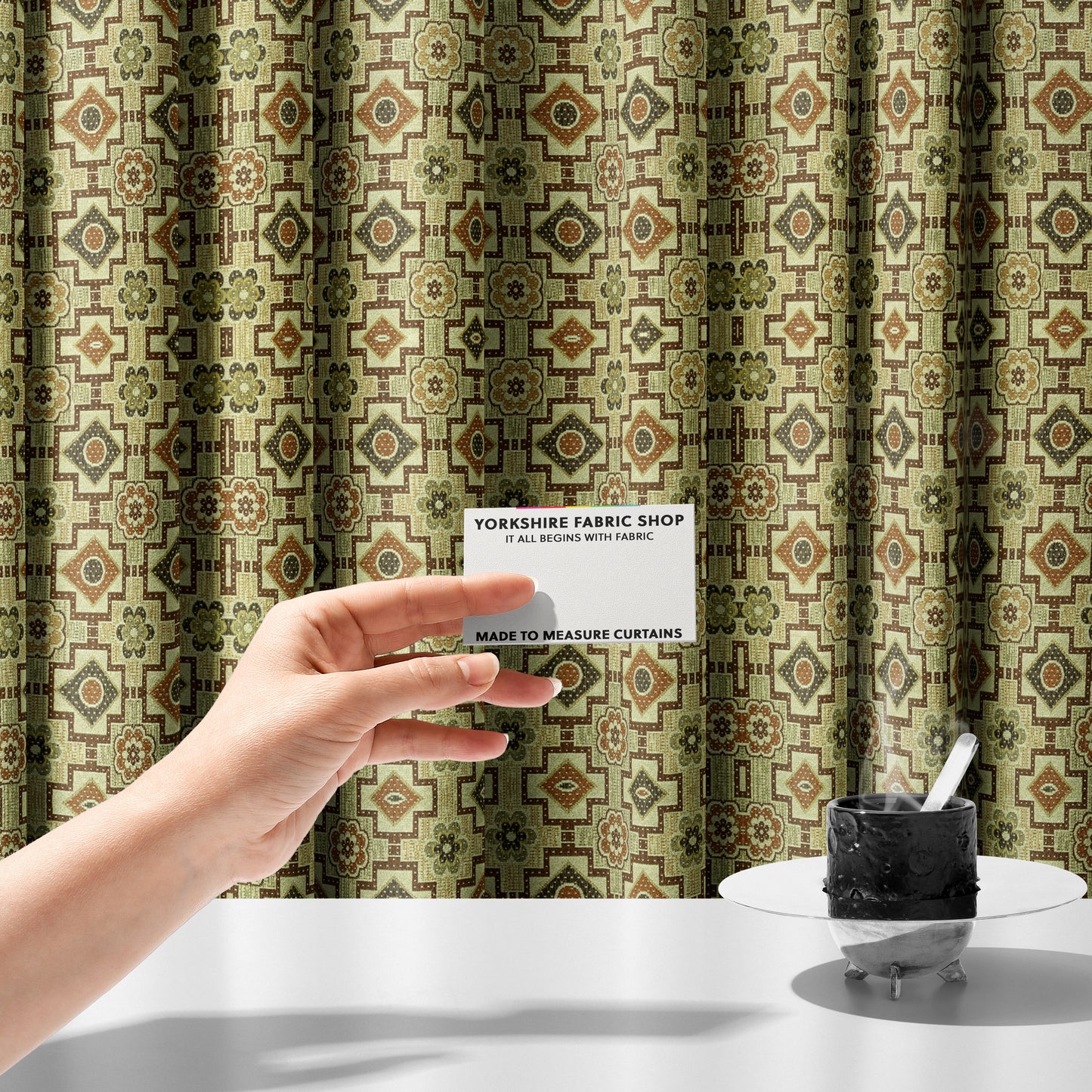 Elevate your home decor with our Acer green brown chenille upholstery fabric. Its geometric floral pattern adds a touch of sophistication and its durable chenille material ensures longevity. Custom made to measure curtains provide the perfect fit for your windows.