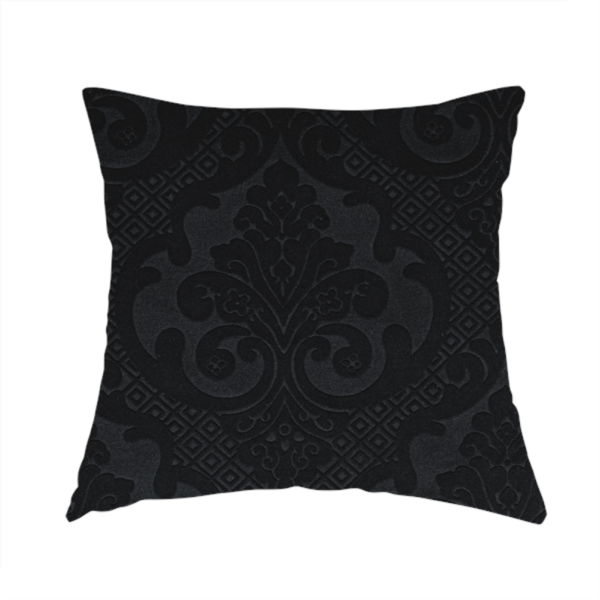 Expertly crafted with a luxurious velveteen fabric, these Agra handmade cushions are sure to add a touch of elegance to any room. The embossed damask pattern adds depth and texture, making them the perfect addition to your upholstery curtains. Elevate your home decor with these black velvet beauties.