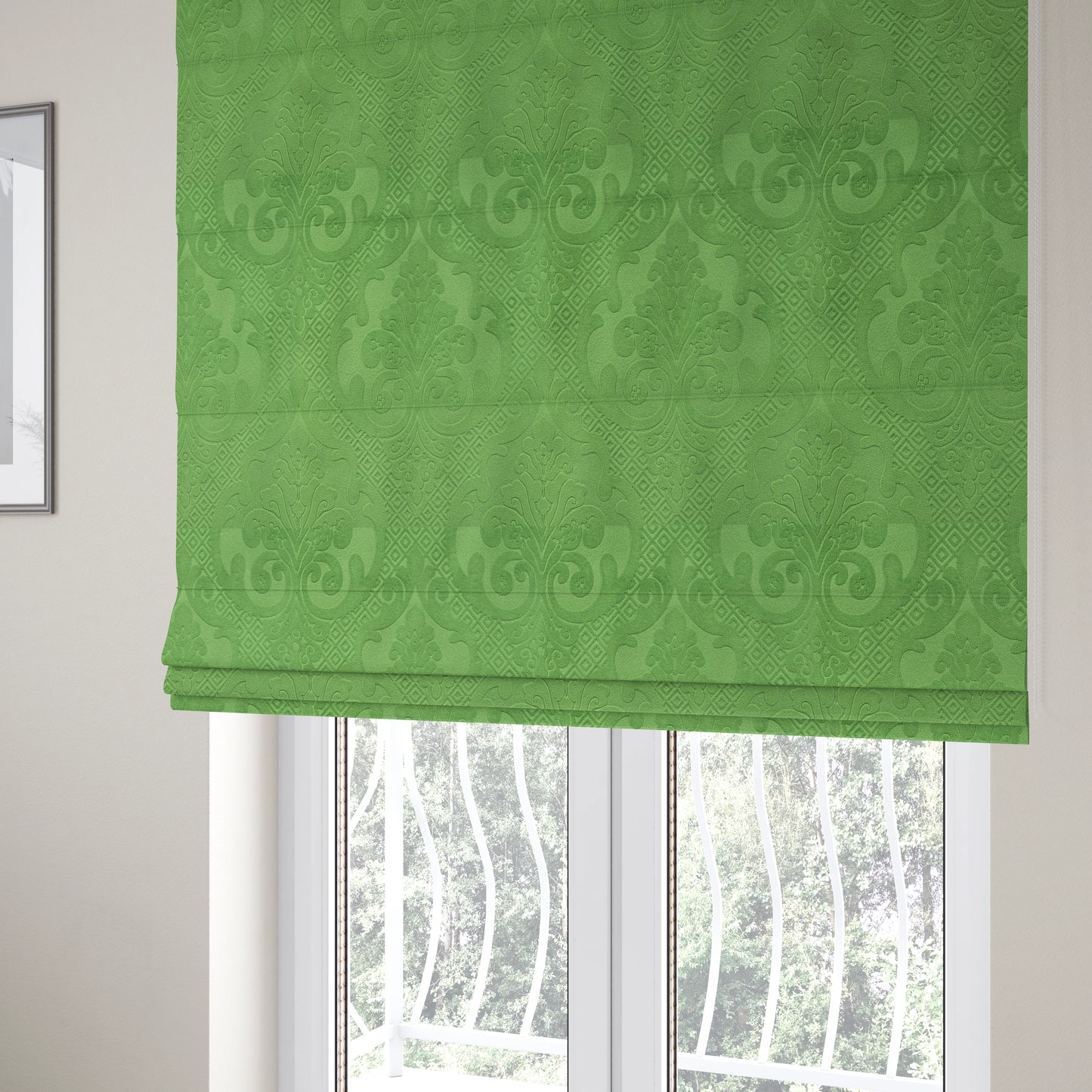 Enhance the look of your windows with our Agra Roman blinds. Made from premium velveteen fabric, these curtains feature an elegant embossed damask pattern in a lush green colour. The perfect combination of luxury and style, these blinds will add a touch of sophistication to any room.