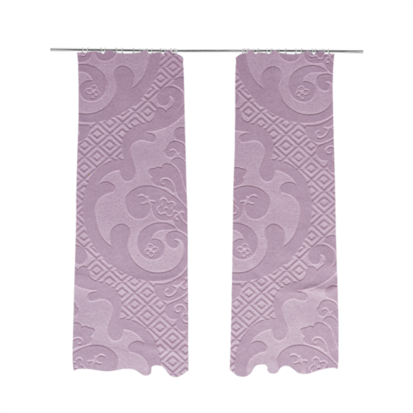 These Agra curtains are expertly crafted and made to measure with a beautiful velveteen embossed damask pattern. The lilac velvet adds a touch of luxury and elegance to any room while also providing customizable dimensions for a perfect fit. Make a statement with these high-quality curtains.