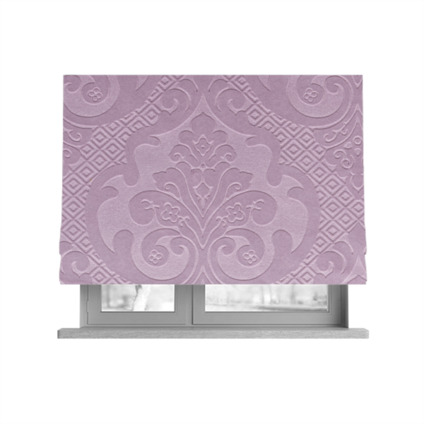 Upgrade your home's style with our Agra Roman blinds. Made with luxurious lilac velvet, our curtains feature an elegant embossed damask pattern that will add a touch of sophistication to any room. The velveteen material not only looks and feels luxurious, but it also helps to reduce outside noise and increase privacy. Transform your space with our Agra Roman blinds today.