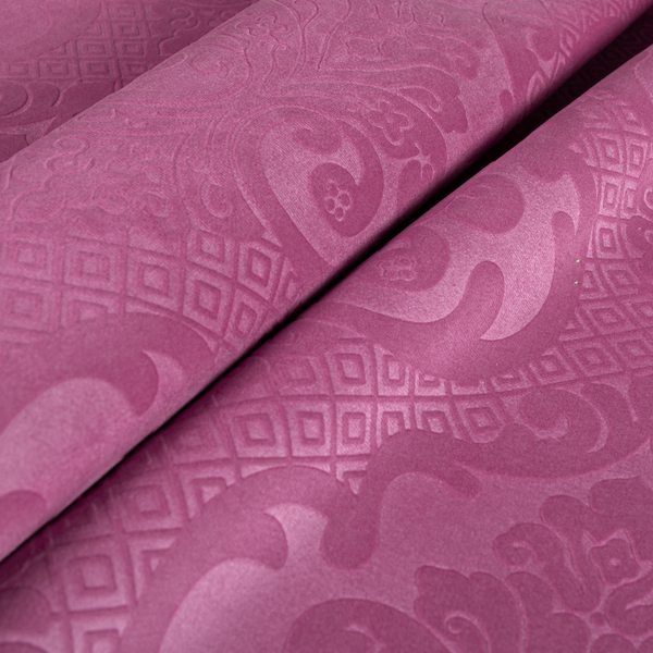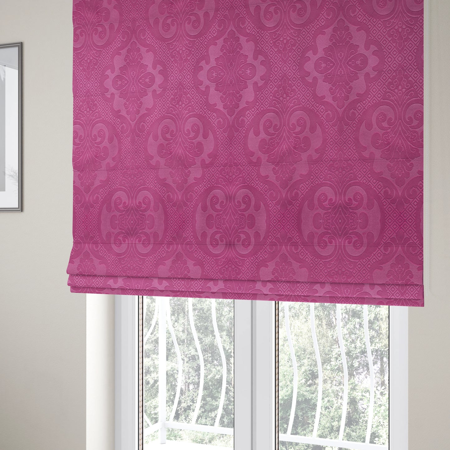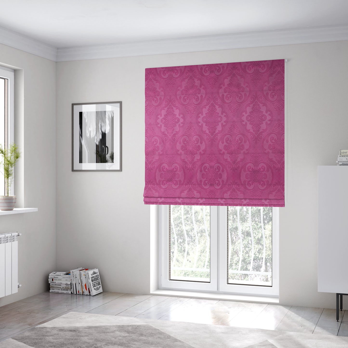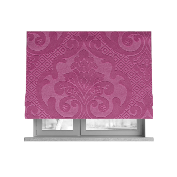 Upgrade your space with our Agra Roman blinds. Made from luxurious velveteen and featuring an embossed damask pattern, these curtains provide both style and functionality. Add a touch of elegance to any room with the soft pink hue and upgrade your decor today.