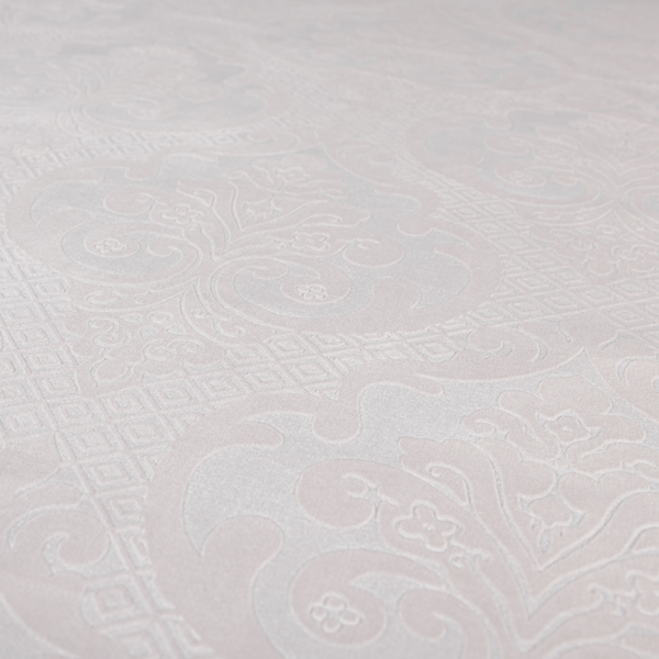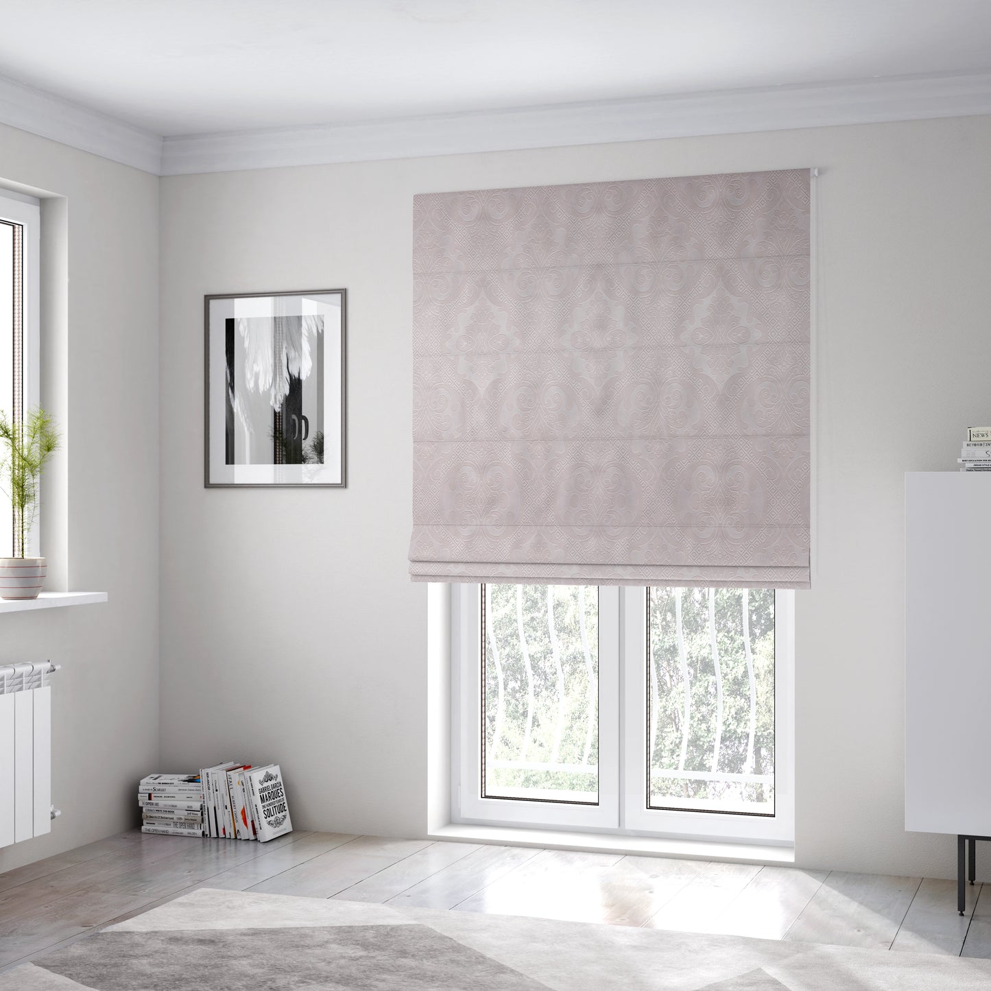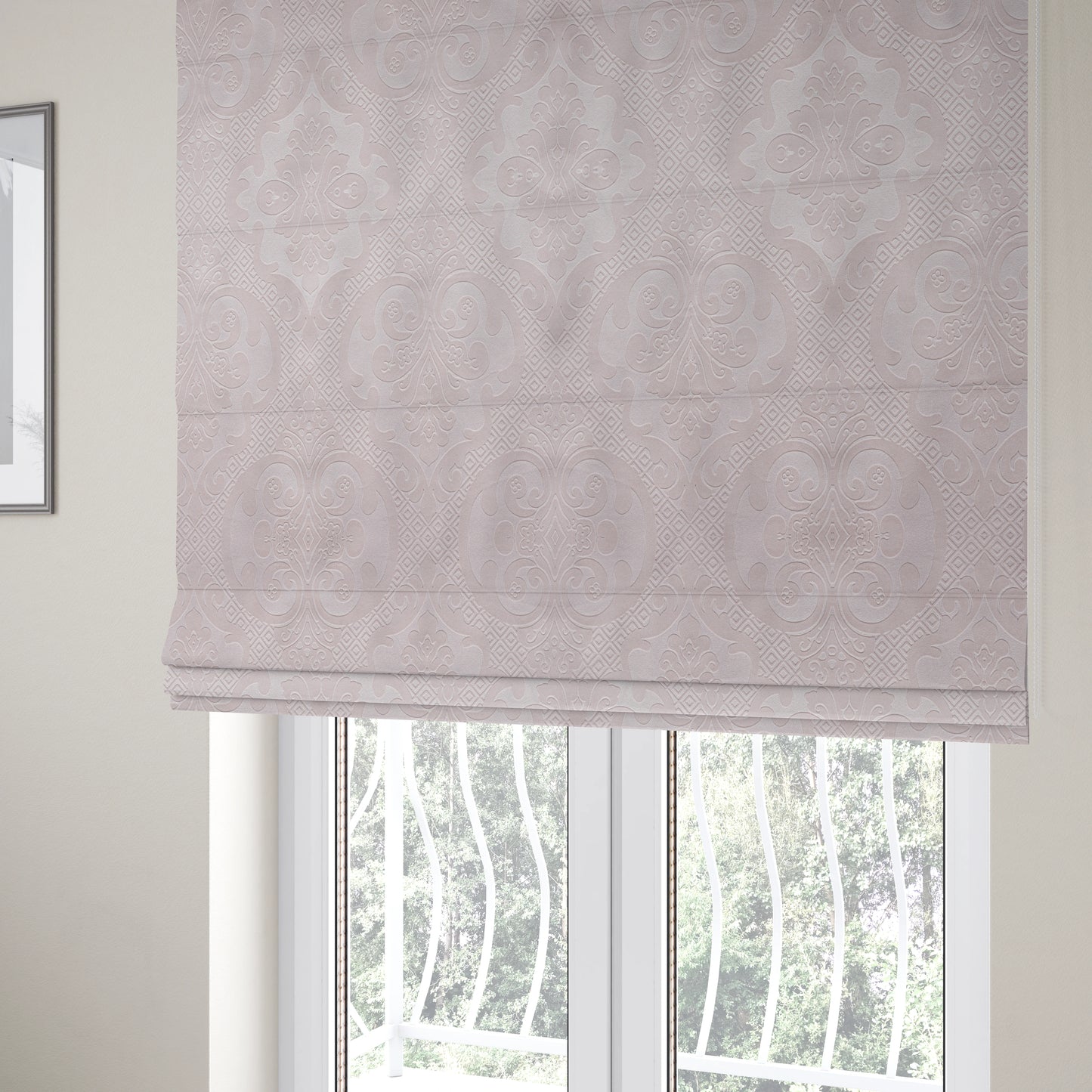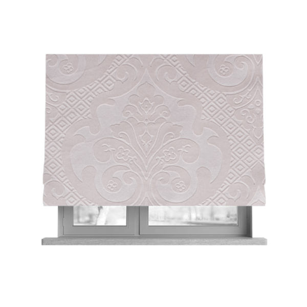 Expertly designed for a luxurious look, the Agra Roman blinds feature a stunning embossed damask pattern with a soft velveteen texture. Perfect for adding a touch of elegance to any room, these curtains are made from high-quality upholstery fabric in a beautiful pink hue. Elevate your home decor with these exquisite curtains.