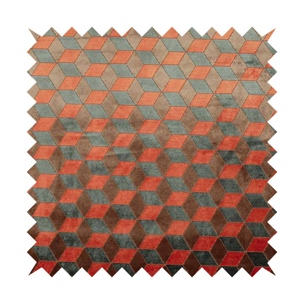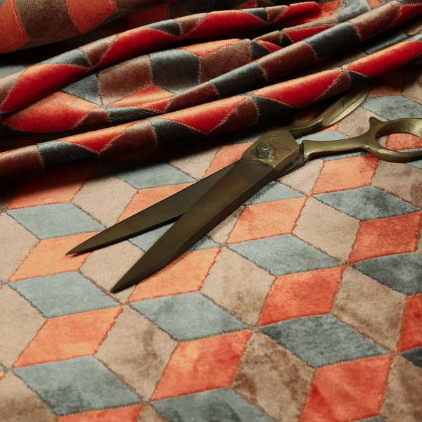 Akita Geometric 3D Pattern Velvet Fabric In Orange Grey Colour - Roman Blinds