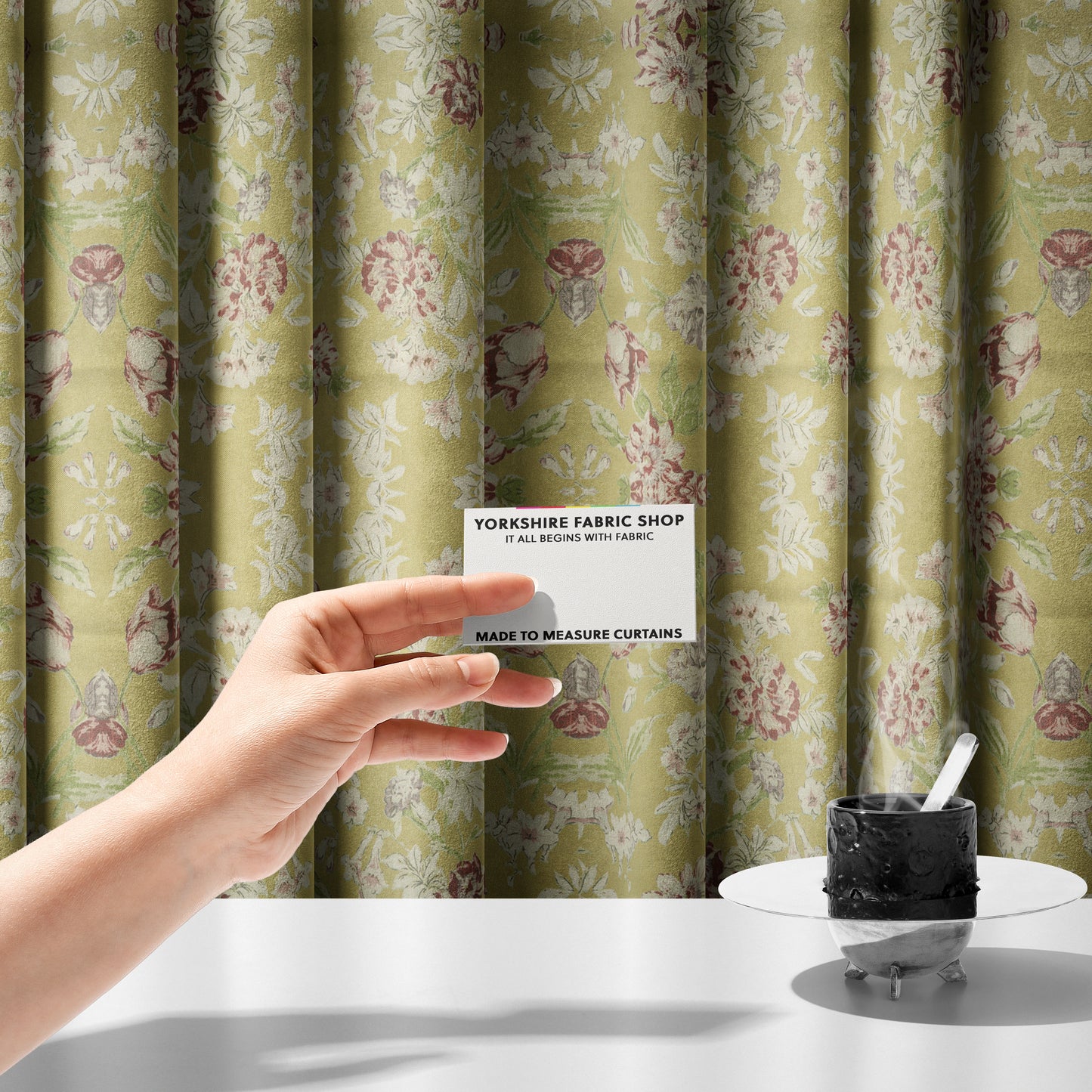 This luxurious Alnwick floral printed upholstery fabric, in a stunning yellow colour, is perfect for creating custom-made curtains. The intricate floral print adds a touch of elegance to any room, while the made-to-measure feature ensures a perfect fit for your windows. Enhance your home decor with this high-quality fabric.