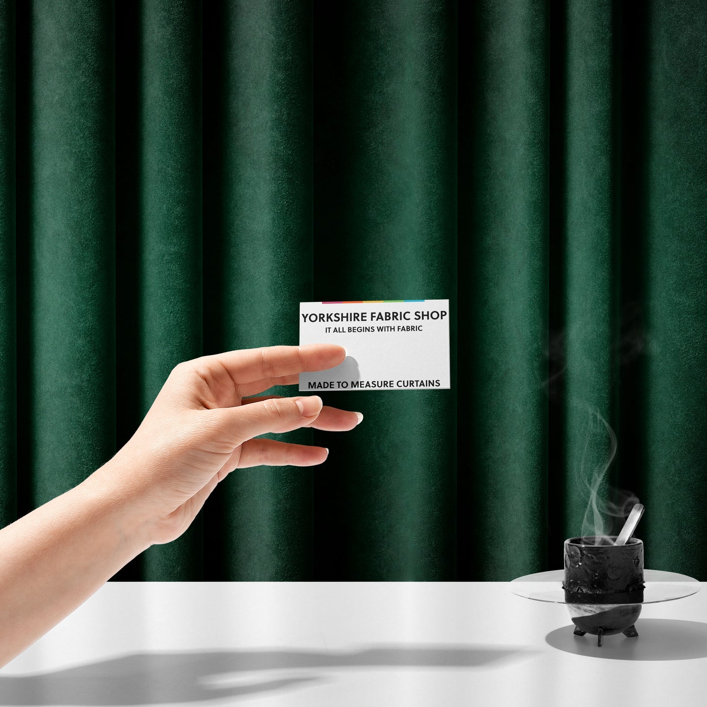 Transform your space with our Alpha plain durable velvet brushed cotton effect upholstery fabric. The luxurious green colour adds a touch of elegance to any room, while the durable velvet material provides long-lasting comfort and style. Perfect for creating custom made curtains that fit your space perfectly.