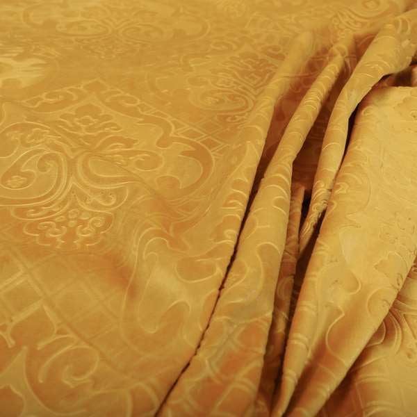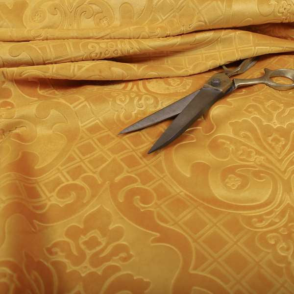 Experience luxury and sophistication with our Alvaro velveteen embossed damask pattern upholstery curtains fabric. The vibrant orange colour adds a pop of energy to any space while the Roman blinds style adds a touch of elegance. Elevate your decor with this premium fabric.