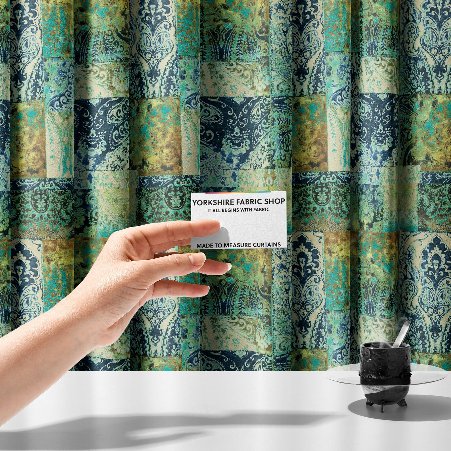 Transform your space with our Amalfi velvet upholstery fabric. The patchwork pattern boasts a unique blend of green and blue, adding a touch of luxury to any room. Made to measure curtains elevate your decor, while the velvet material ensures durability and comfort. Order now for a perfect fit.