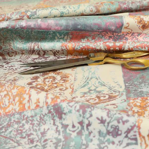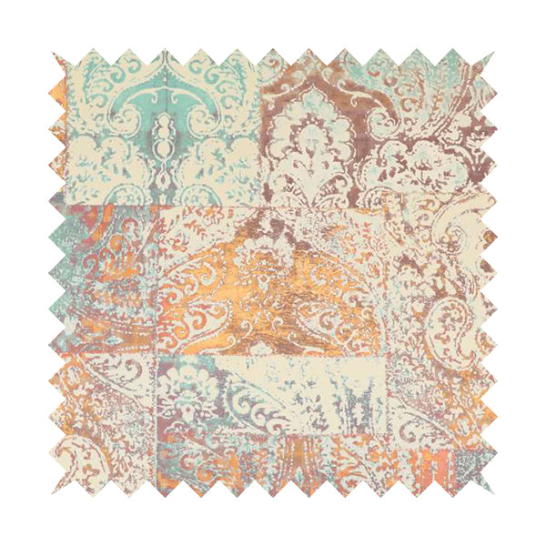This Amalfi patchwork pattern printed velvet fabric features a beautiful range of pastel colours, perfect for Roman blinds and adding a touch of elegance to any room. The soft and luxurious texture adds comfort and style to your home decor. Upgrade your blinds with this high-quality upholstery fabric.