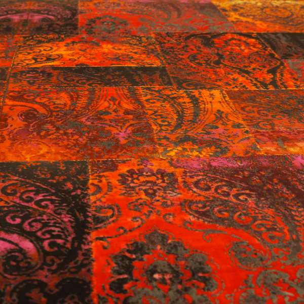 Expertly crafted with a beautiful Amalfi patchwork pattern, this printed velvet upholstery fabric adds a touch of elegance and sophistication to any room. Its vibrant red and orange colours provide a warm and inviting atmosphere while its durable material makes it perfect for Roman blinds.