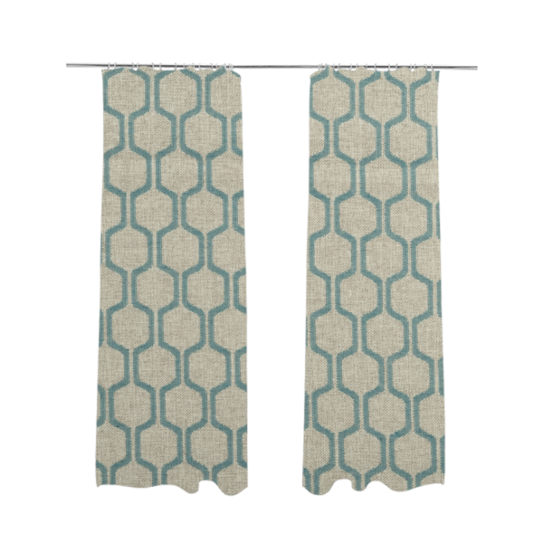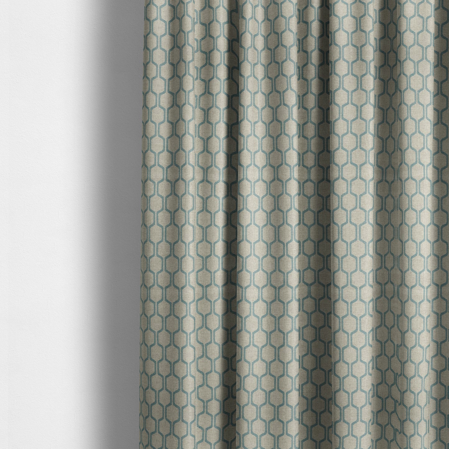 Expertly crafted and made to measure, our Amira upholstery fabric in blue showcases a stylish honeycomb stripe pattern. Perfect for adding a touch of sophistication to any room, this fabric is ideal for creating custom-made curtains. Enhance your home decor with our high-quality and elegant fabric.