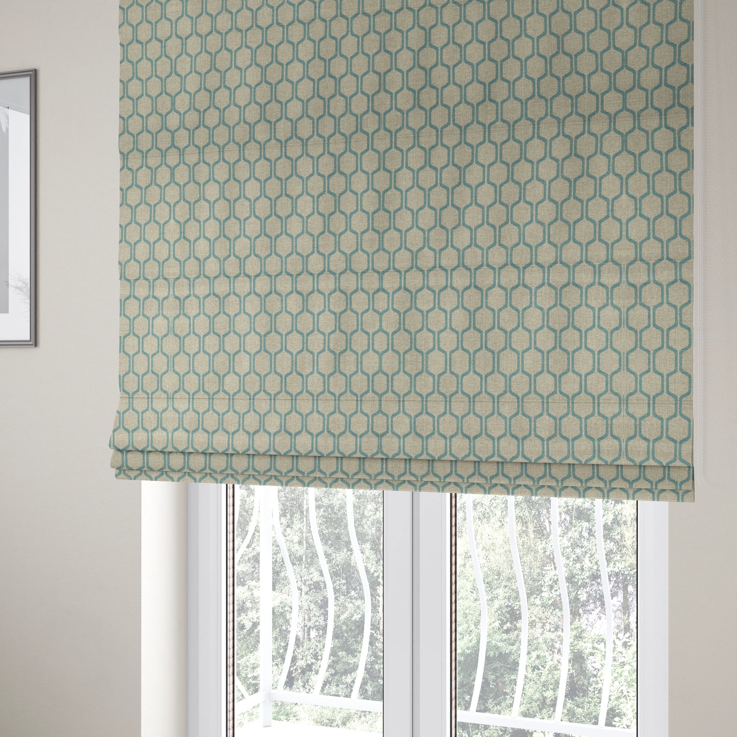 Elevate the style of your home with our Amira blue Upholstery Fabric. The honeycomb stripe pattern adds a touch of unique elegance to your space. Made for Roman blinds, the durable fabric is both functional and stylish. Refresh your living space with this sophisticated addition.