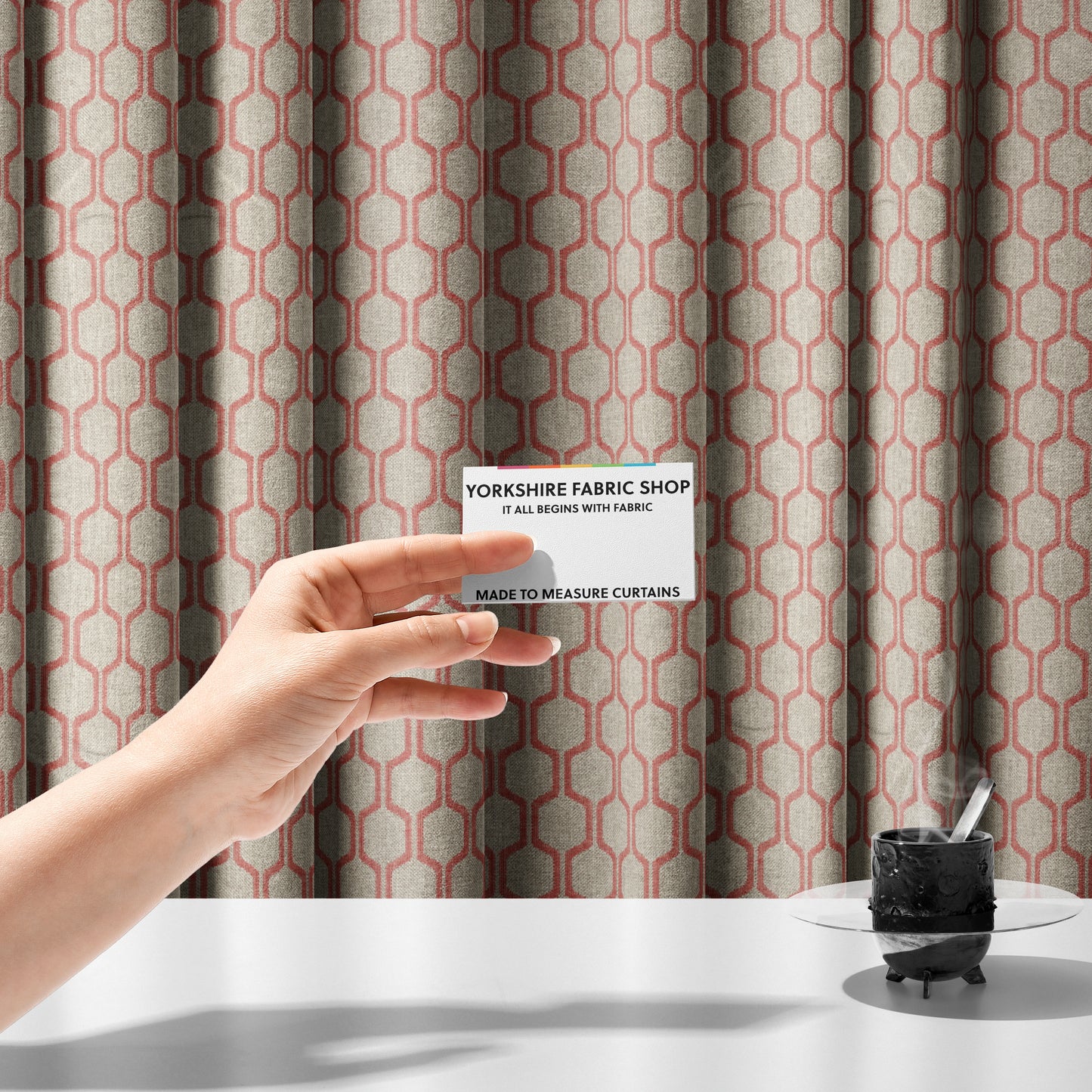 Expertly crafted with a honeycomb stripe pattern, the Amira upholstery fabric in pink adds a touch of elegance to any room. Its made-to-measure curtains provide a perfect fit for your home, bringing both style and functionality. Create a customized look for your windows with this versatile and high-quality fabric.