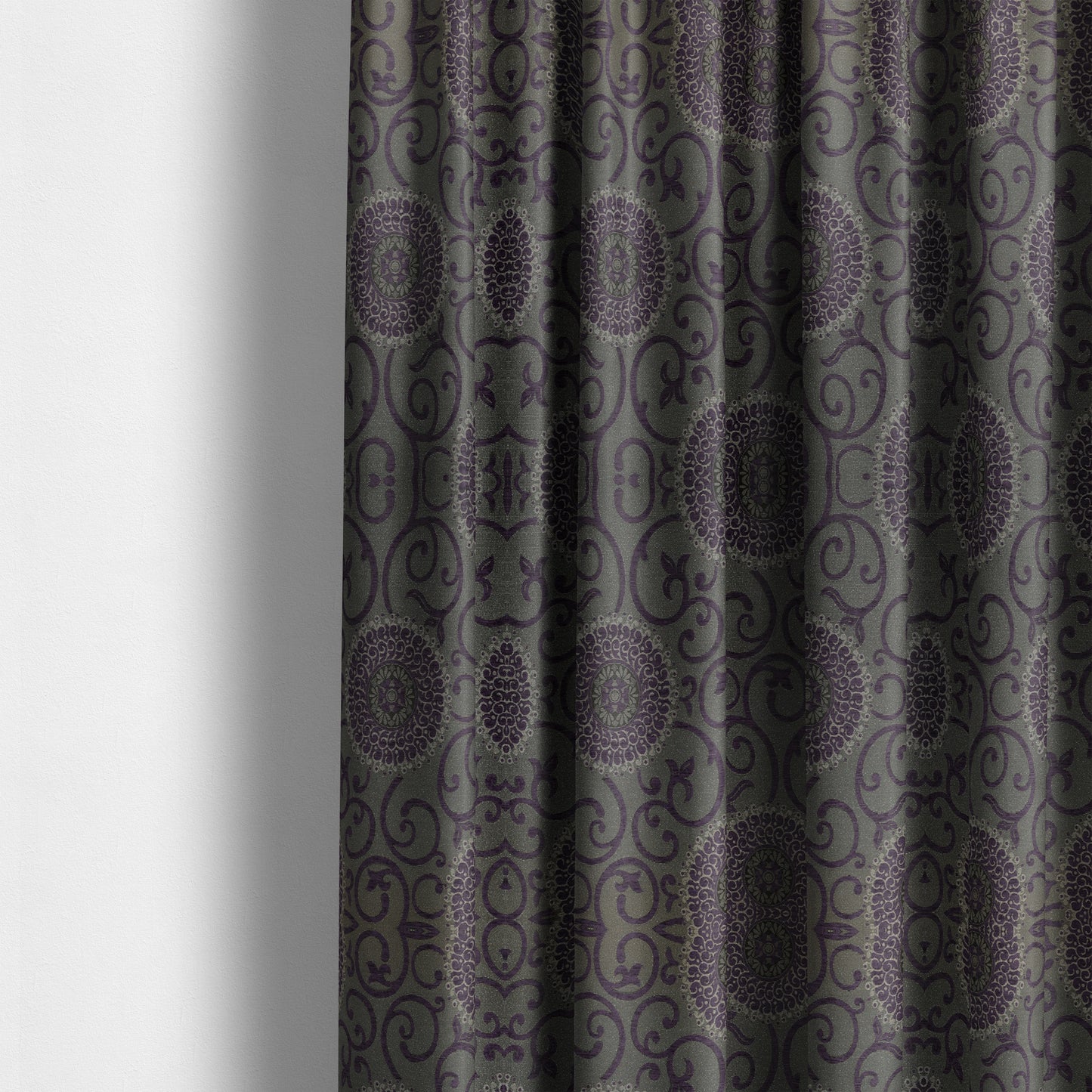 This Anthozoa collection round floral shiny finish pattern in purple upholstery fabric is the perfect choice for elegant and stylish curtains. The beautiful round floral pattern adds a touch of sophistication, while the shiny finish provides a luxurious look. Made to measure for a perfect fit, these curtains are sure to enhance any room.