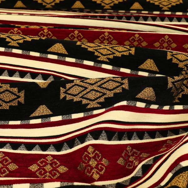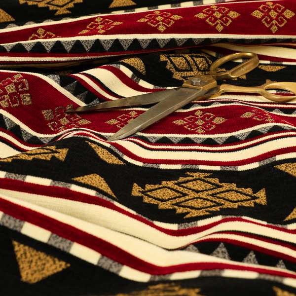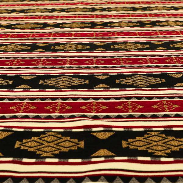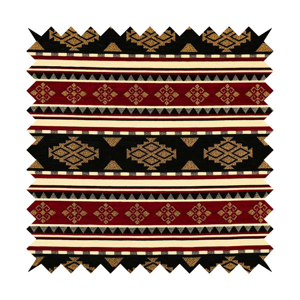 Anthropology Kilim Pattern Fabric In Burgundy Black Gold Colour Upholstery Furnishing Fabric CTR-147 - Roman Blinds
